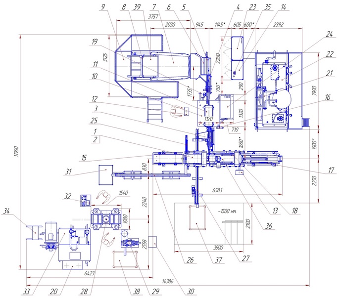 17.  Пневмопривод комплекса.